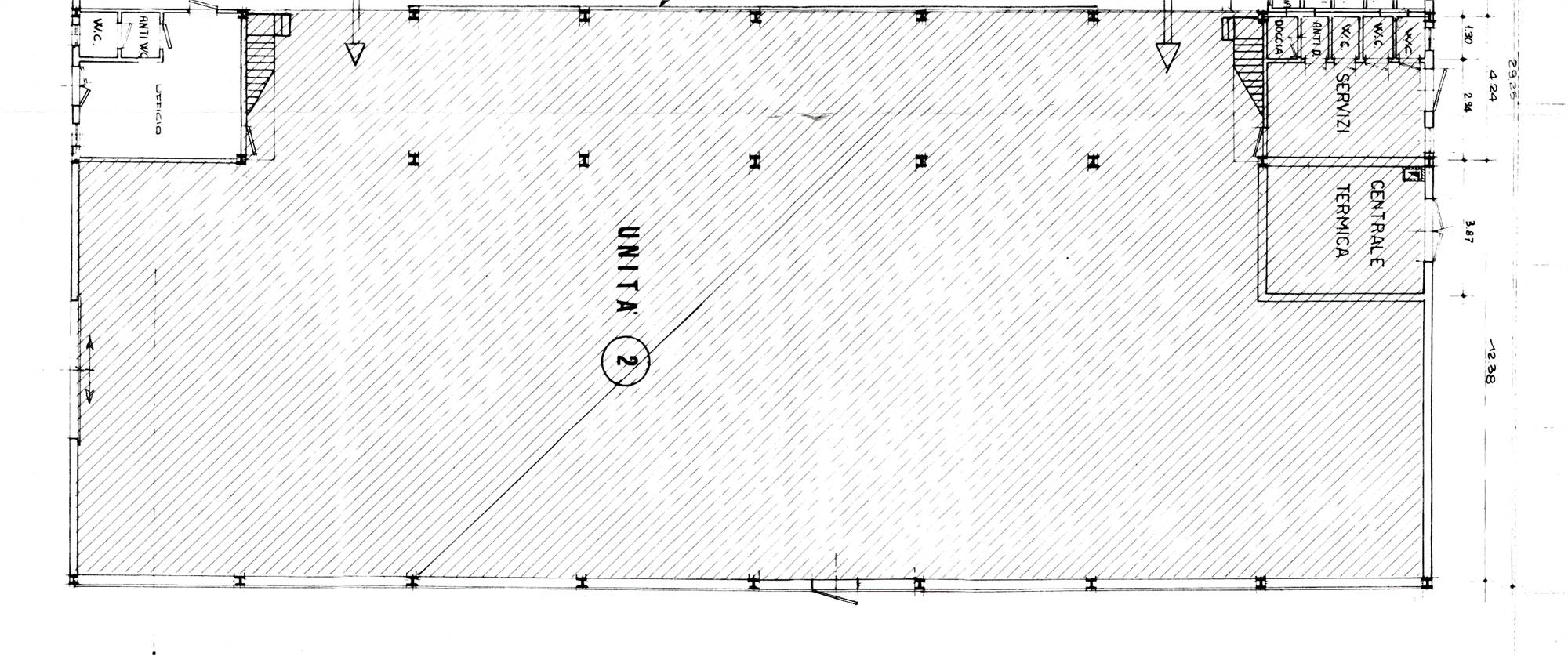 Libero su tre lati capannone di circa 400 mq con ufficio, servizi igienici e doccia. Due carri ponte. Su tre lati cortile di circa 5 m di larghezza. Ottime condizioni, adibito precedentemente ad officina meccanica. libero
