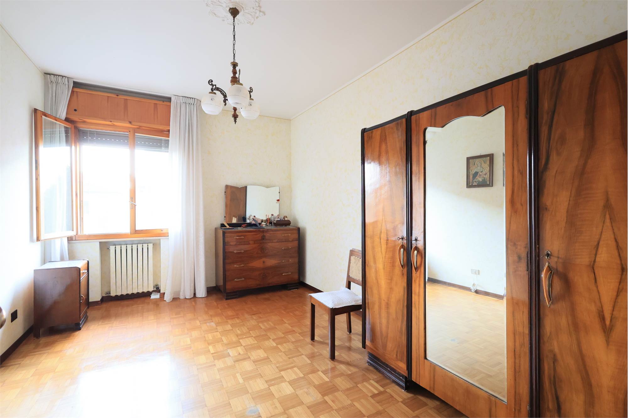 Splendido appartamento fine anni 70 posto in palazzina di poche unità abitative. Secondo piano senza ascensore è così sviluppato: ingresso, cucina abitabile, soggiorno con balcone, due camere da letto di cui una con balcone , due bagni e soffitta. Al piano terra ampia autorimessa e cantina. Area cortiliva condominiale e parte esclusiva.