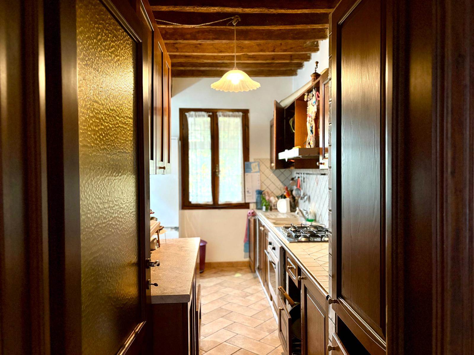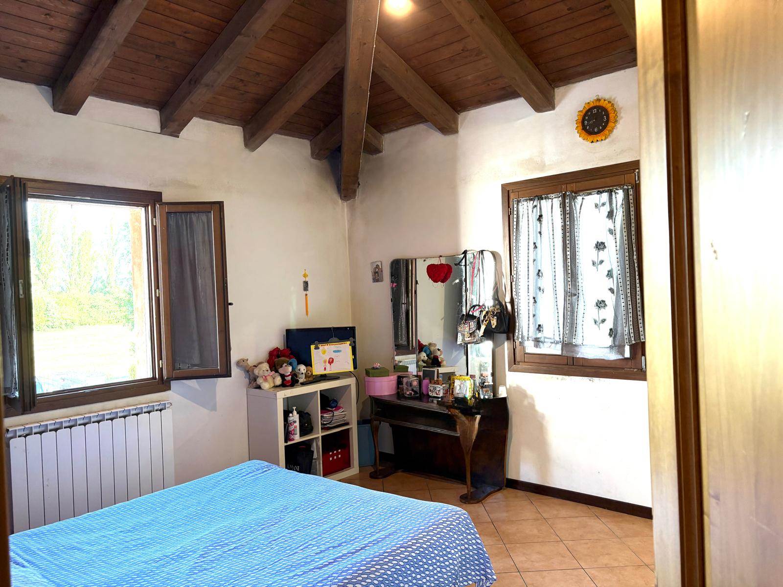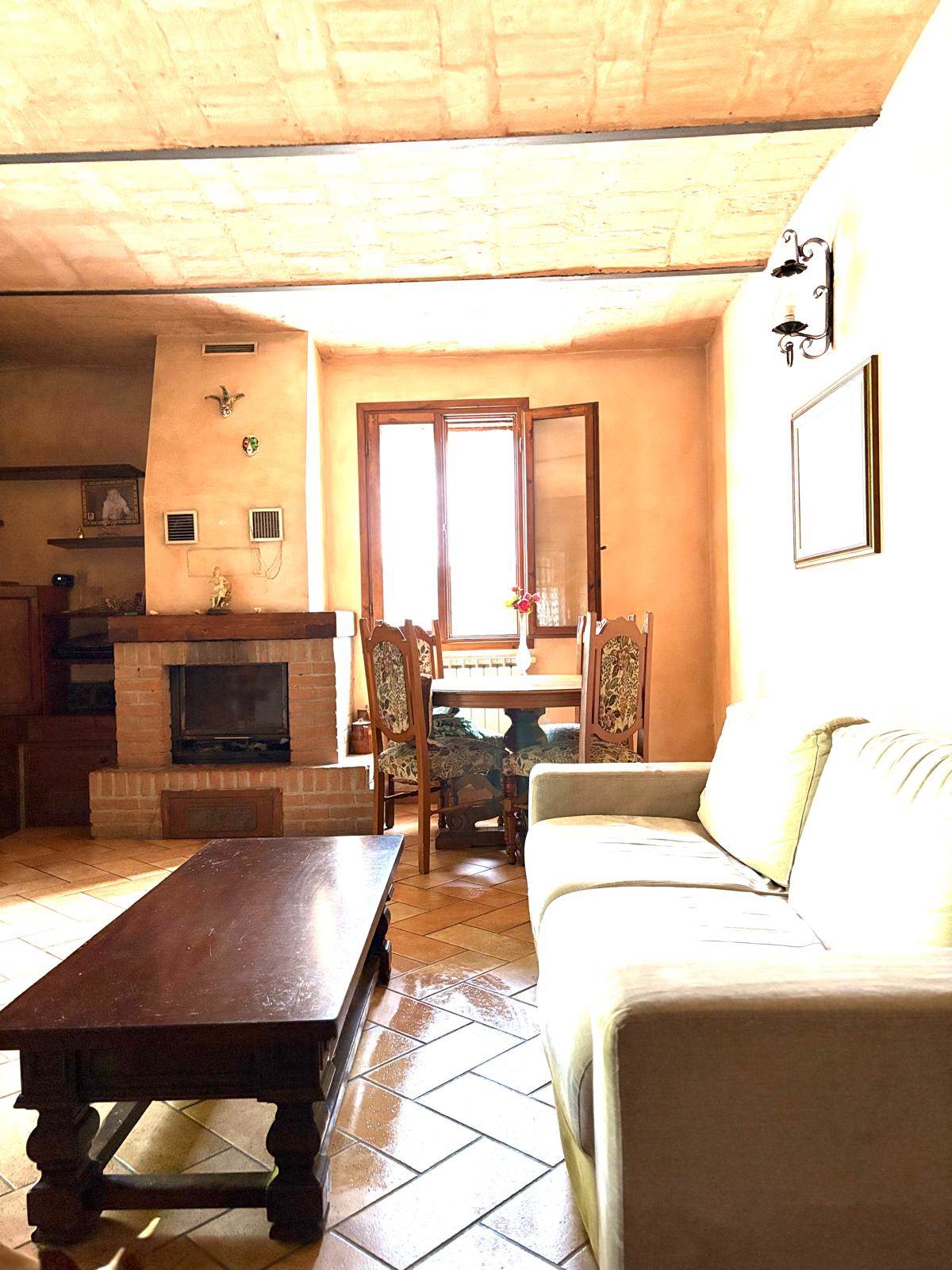 Completamente ristrutturata nel 2005, questa unità immobiliare è sviluppata su due livelli con area cortiliva esclusiva di circa 800 mq e bassocomodo. Il cancello è comune ad altra unità immobiliare. A piano terra oltre ad un ingresso spazioso, troviamo la cucina abitabile, il bagno, il soggiorno di ampie dimensioni con camino ed affaccio esterno ed una ampia stanza che si può adibire a studio, stanza lavoro o quarta camera. Al livello superiore tre sono le camere da letto che affacciano su ampio disimpegno e bagno. Una porta conduce ad una porzione di sottotetto parzialmente ristrutturata. Il bassocomodo, di circa 80 mq, è da ristrutturare. Da visitare per quanti vedono in questa soluzione, un modo nuovo di abitare vicino alla campagna più prossima alla città.