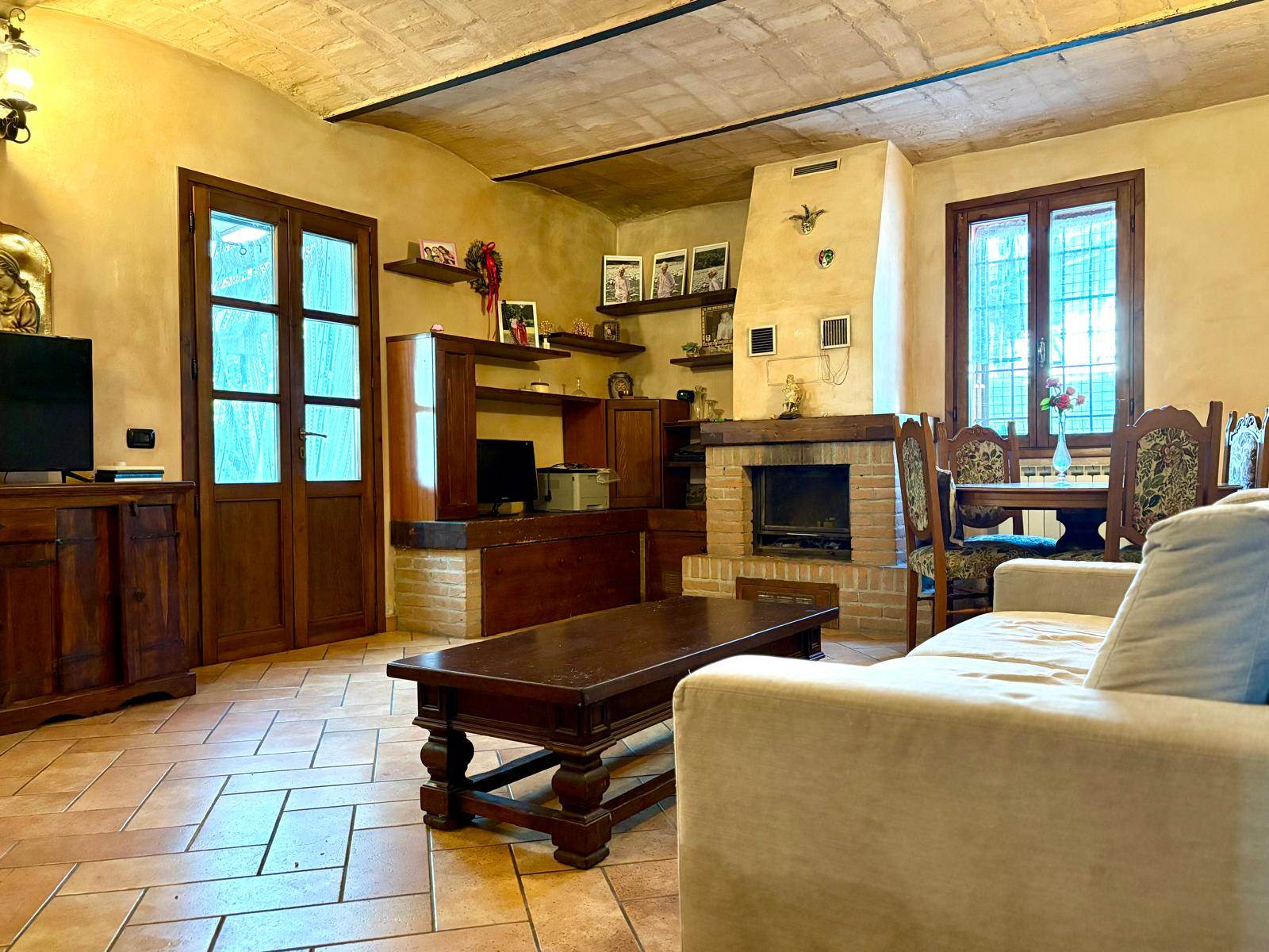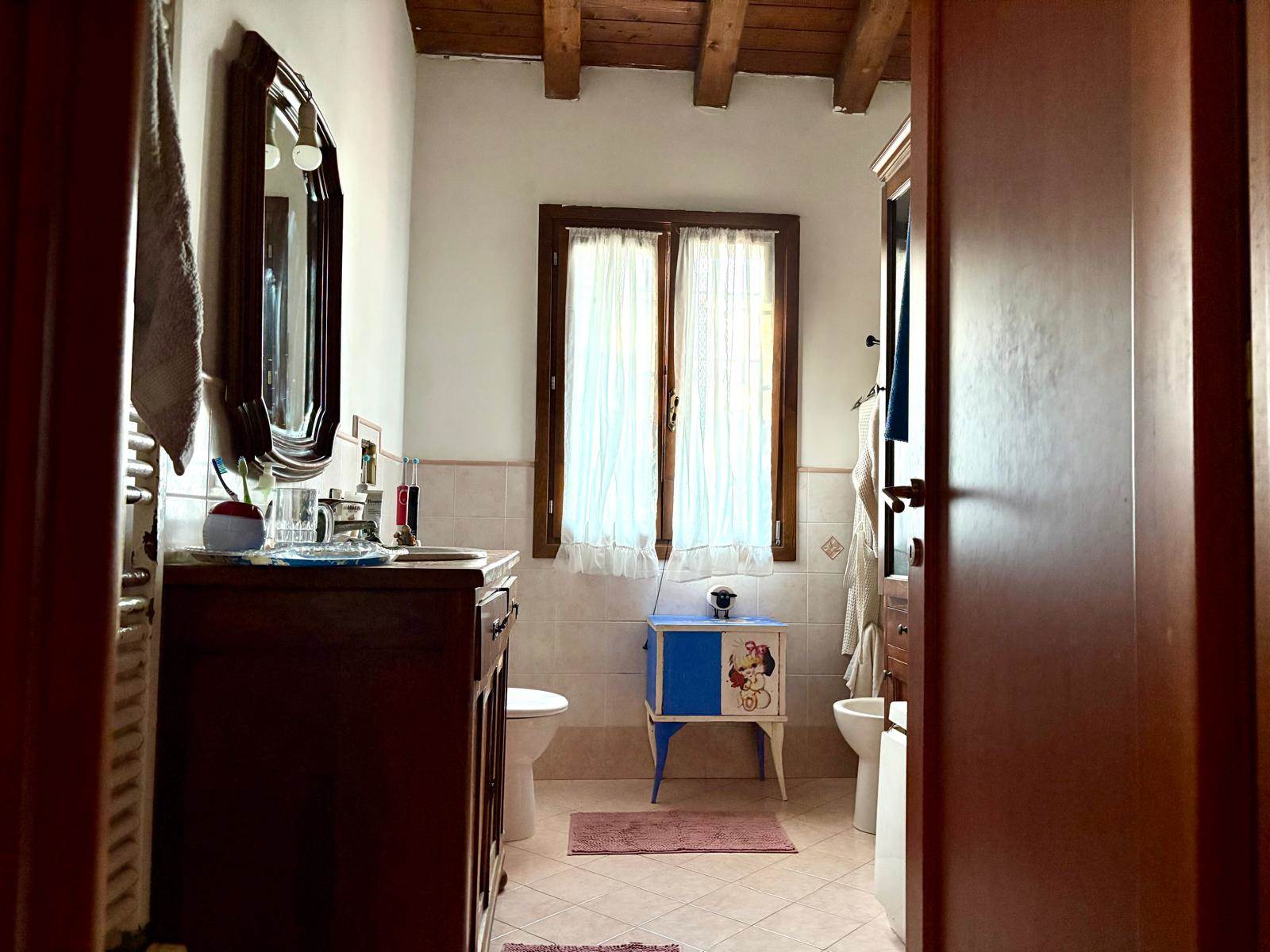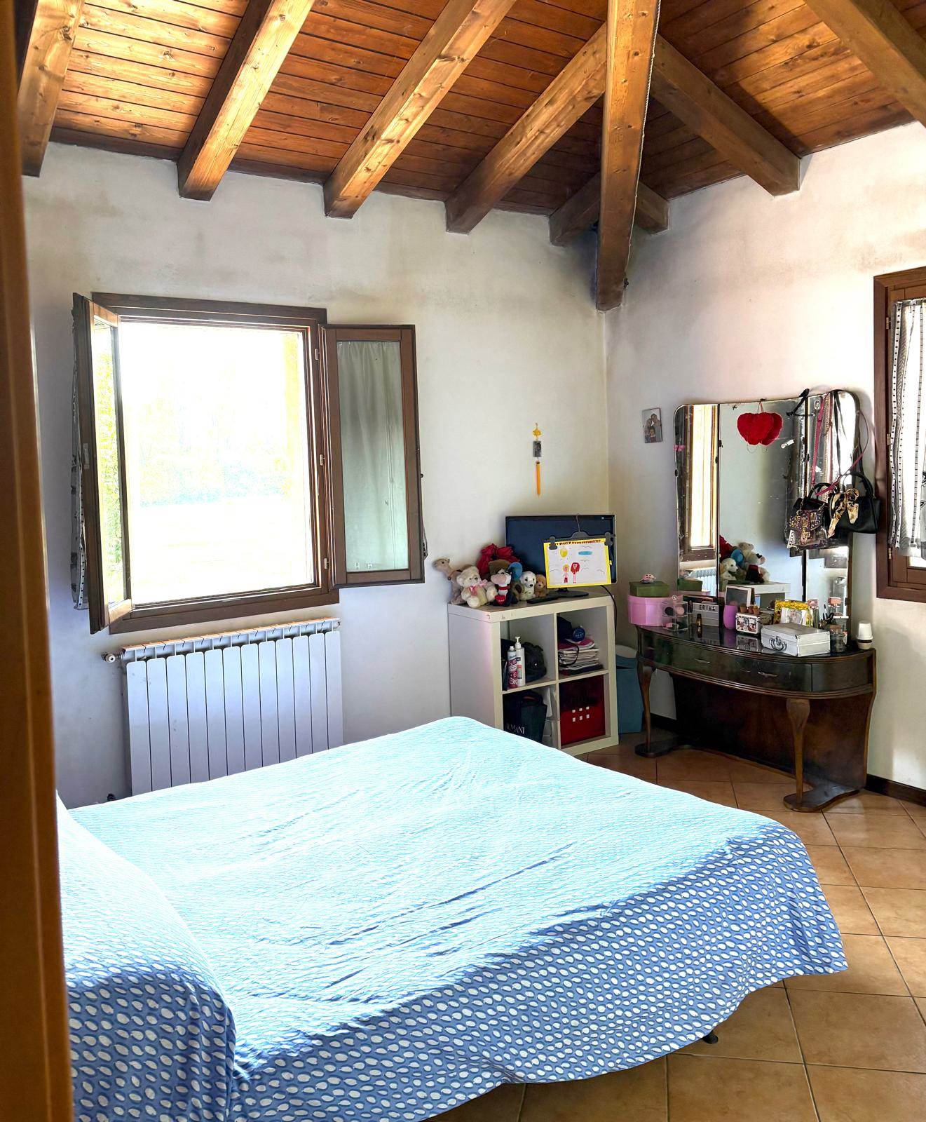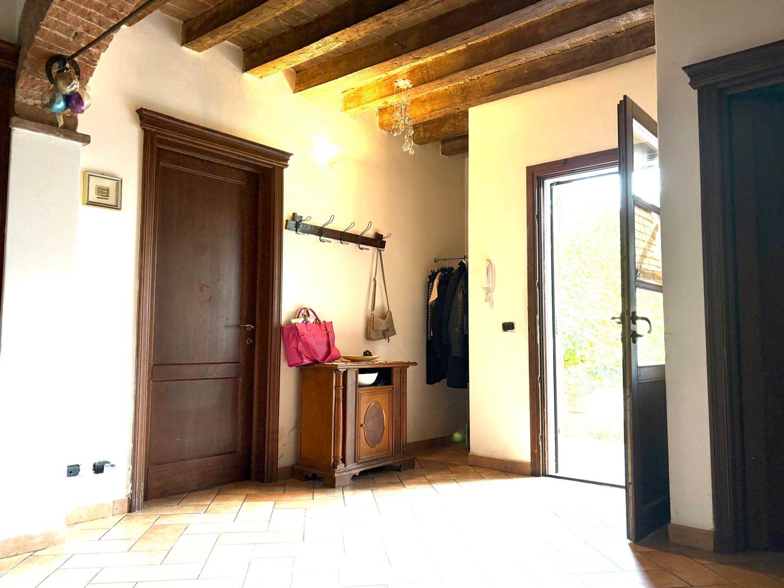Completamente ristrutturata nel 2005, questa unità immobiliare è sviluppata su due livelli con area cortiliva esclusiva di circa 800 mq e bassocomodo. Il cancello è comune ad altra unità immobiliare. A piano terra oltre ad un ingresso spazioso, troviamo la cucina abitabile, il bagno, il soggiorno di ampie dimensioni con camino ed affaccio esterno ed una ampia stanza che si può adibire a studio, stanza lavoro o quarta camera. Al livello superiore tre sono le camere da letto che affacciano su ampio disimpegno e bagno. Una porta conduce ad una porzione di sottotetto parzialmente ristrutturata. Il bassocomodo, di circa 80 mq, è da ristrutturare. Da visitare per quanti vedono in questa soluzione, un modo nuovo di abitare vicino alla campagna più prossima alla città.
