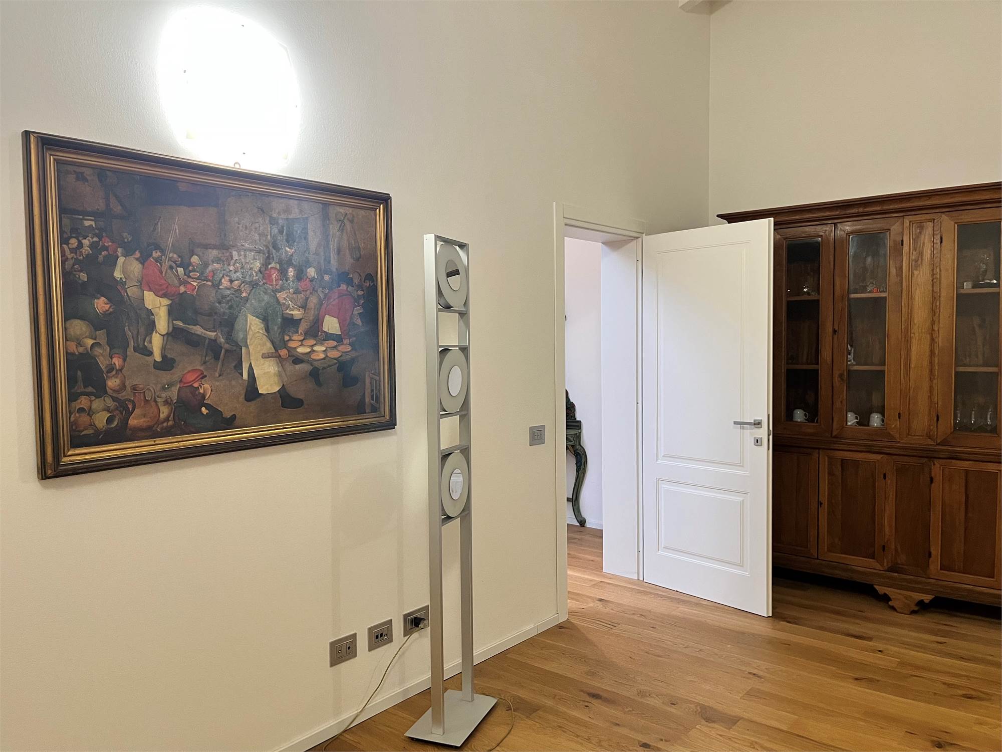 Era una giornata piovosa e la strada esterna affollata come nelle prime ore del giorno. Il cancello elettrico si è aperto su un ampio cortile comune recintato da una inferriata solida: il resto del mondo lasciato fuori. Il portone di ingresso si affaccia sul pianerottolo gradevole: o ascensore o scale...belle. Al secondo piano si accede all'appartamento da porta blindata: sono entrata in una bella stanza, luminosa e spaziosa che si è scelto di adibire ad ufficio ed attesa ospiti. Il soggiorno ..ma che soggiorno!..caratterizzato dal soffitto con travi a vista tinteggiati di bianco e da un "caldo" pavimento in rovere..le stanze da letto..la cucina..i bagni...che dire..mi sono persa ad ammirare ogni dettaglio mentre la luce filtrava dalle finestre nonostante la giornata grigia e il mondo fuori, in movimento..come in un film muto. Da Vedere!