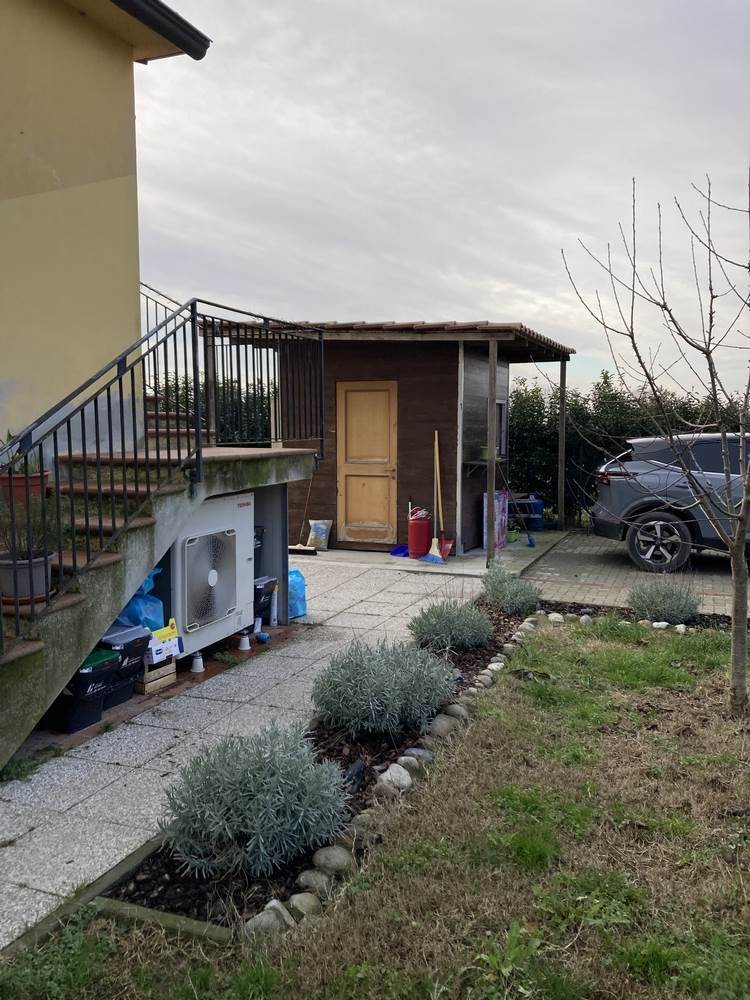 In area cortiliva di circa 400 mq è stata ristrutturata una unità immobiliare così composta: al primo piano ingresso su soggiorno, cucina, camera da letto con cabina armadi, disimpegno notte e bagno con doccia. Si accede all'unità sia da scala esterna che da piano terra, attraverso scala interna. Il piano terra, rifinito come il livello superiore, accoglie ampi spazi adatti ad una tavernetta con bagno/lavanderia e spazioso ripostiglio. L'area cortiliva esterna è caratterizzata da parte piastrellata e parte rifinita ad area verde ove un piccolo bassocomodo si offre come ripostiglio esterno. Posti auto, doppio ingresso carrabile, videocitofono. Unità immobiliare GAS FREE con predisposizione per il fotovoltaico. Se sei solo/a o in coppia ed ami spazi esterni in zone più distanti ai centri abitati e al traffico, VIENI A VISITARLA.